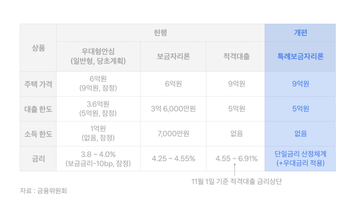 9억원 이하의 집을 살 때 빌리는 사람의 소득에 제한을 두지 않고 5억원까지 돈을 빌릴 수 있도록 한 것이 가장 큰 핵심인데요!
